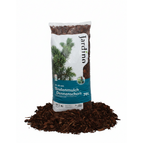 Die Lebensdauer von Kiefernmulch beträgt 3 bis 4 Jahre. Die Größe der Rindenmulch beträgt 20 - 40 mm.